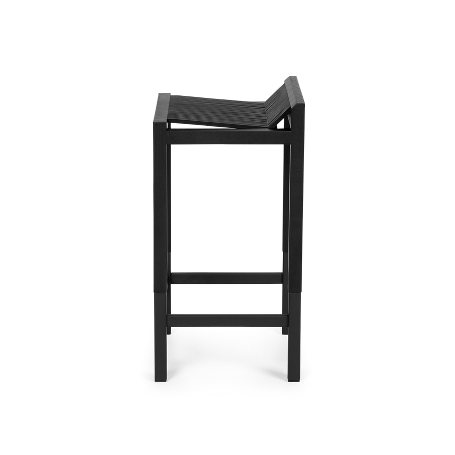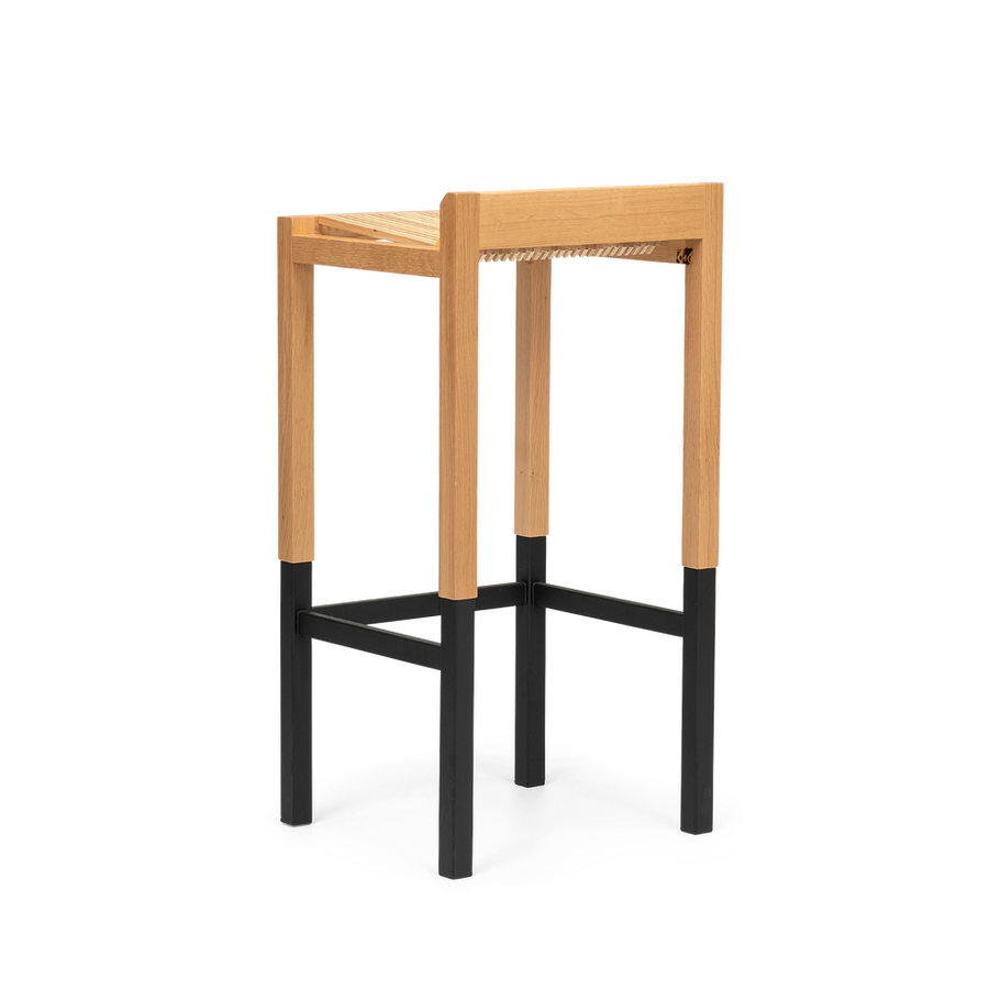 The B_14 Barstool, a perfect blend of style and functionality for any modern setting. Crafted with meticulous attention to detail, this barstool features durable ash wood slats seamlessly integrated into a robust oak frame. The frame is complemented by a sleek black-coated steel base, for stability and longevity.